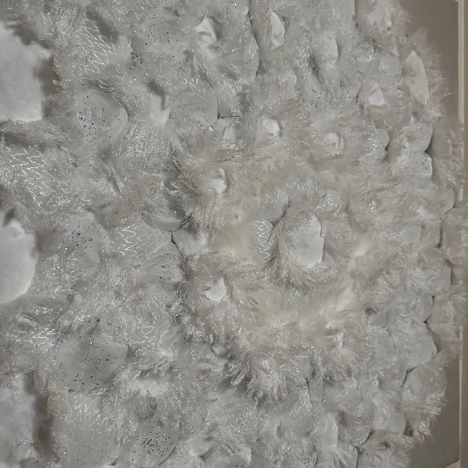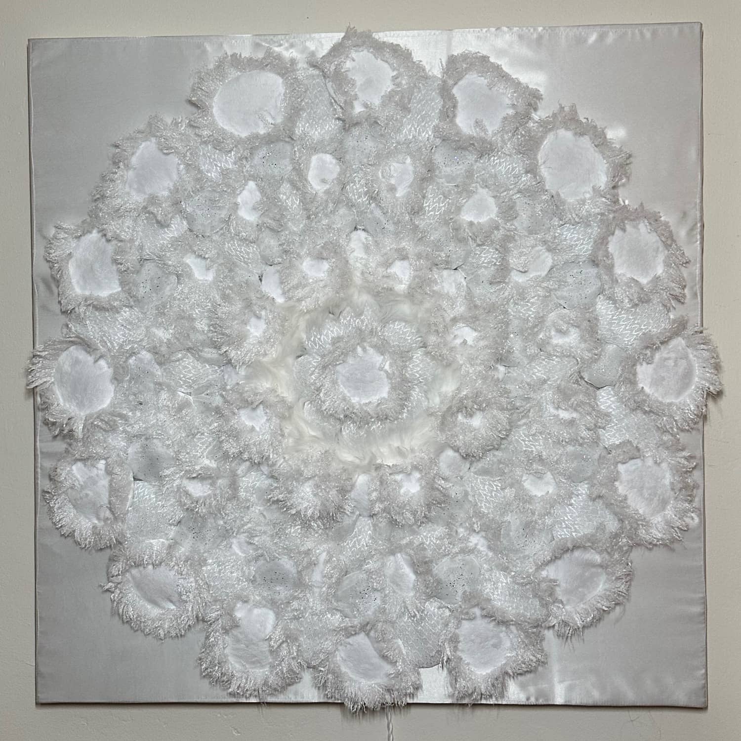 My new piece Framed Comfort 1 was accepted for the show. While the work is abstract, some of the sewn shapes resemble a carpet of sea anemones, and some of the programmed effects are intended to imitate the colors and wave motion of the ocean. It references the ocean theme by using a blue-green color palette for several effects.