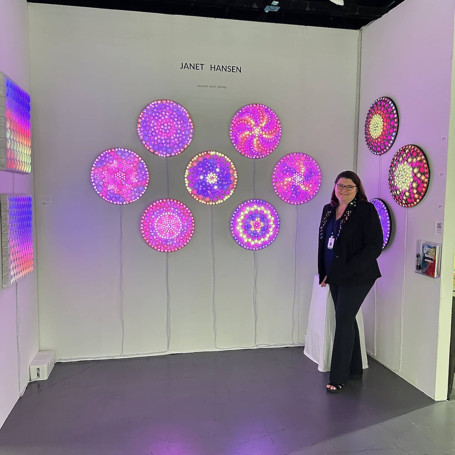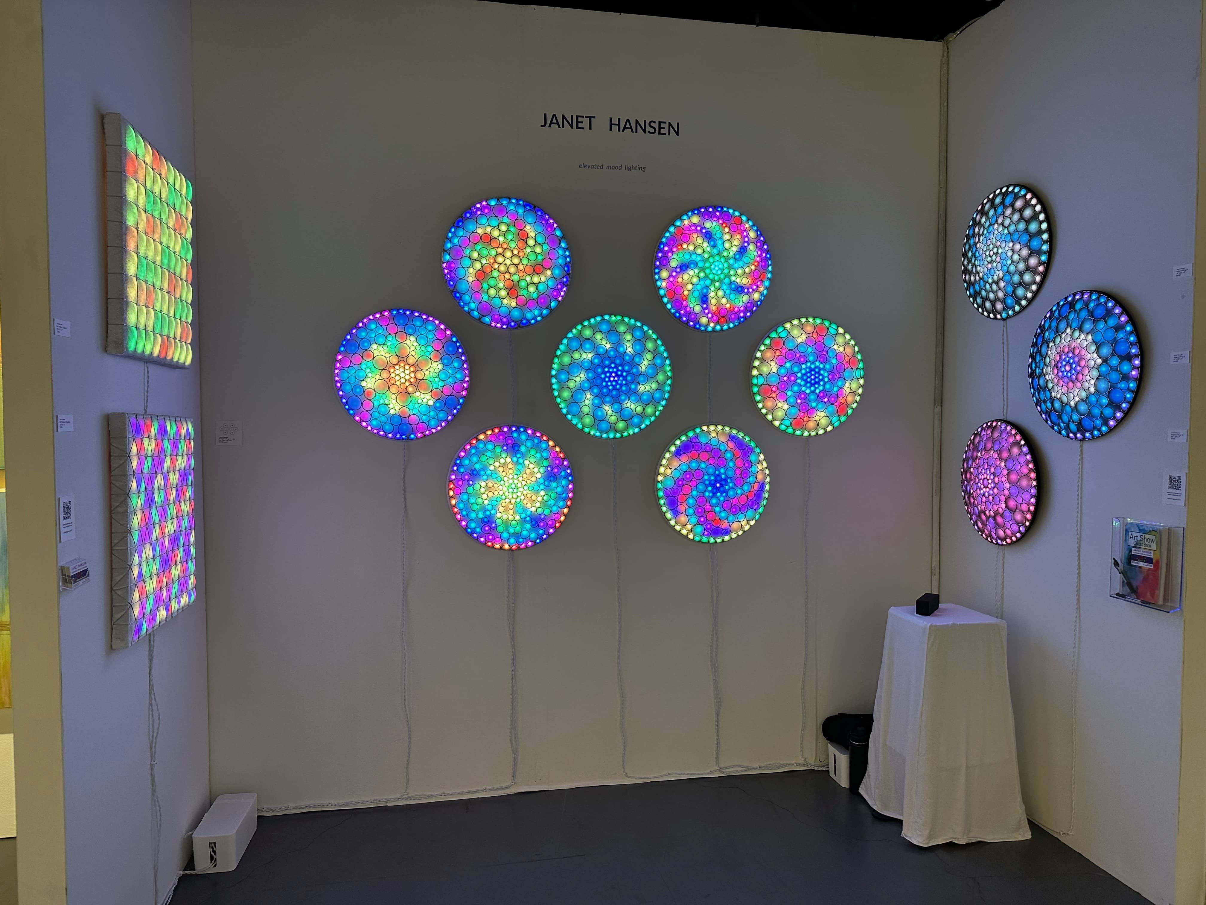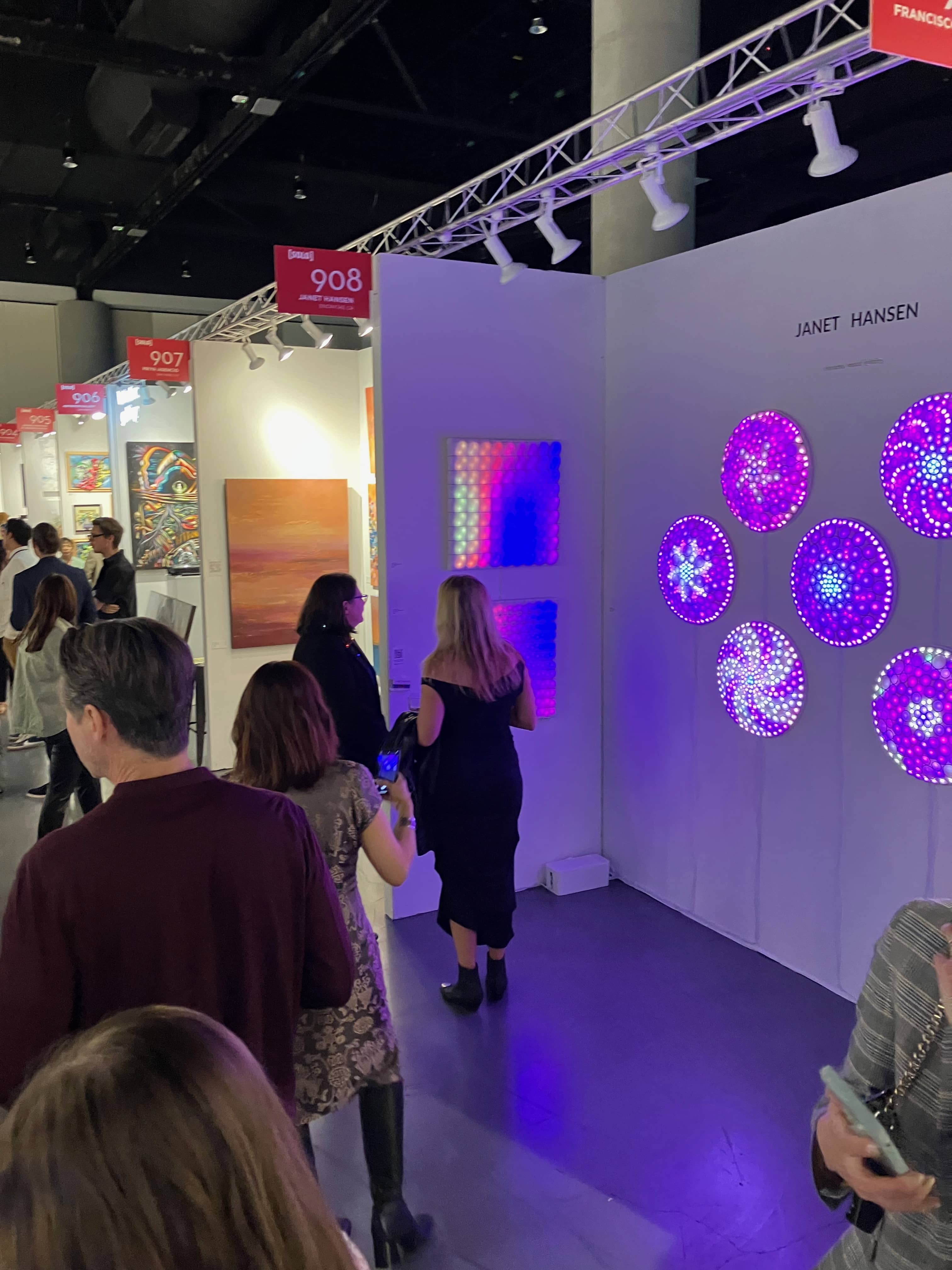 I am exhibiting some of my newest work at Art San Diego, November 3 - 5, 2023. This Contemporary Art & Design Fair takes place at the San Diego Convention Center, and features a mix of booths representing galleries as well as independent artists. I'm excited to show my unique style of abstract geometric illuminated art to a bigger audience.