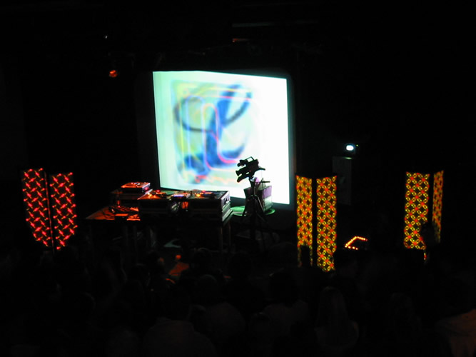 At this event, DJ Kilmore (of Incubus) performed in a solo appearance, with projected visuals by VJ Brett Spivey. A set of eight full-size (48" x 12") Sit 'n Stare panels were used as accent lighting throughout the performance.