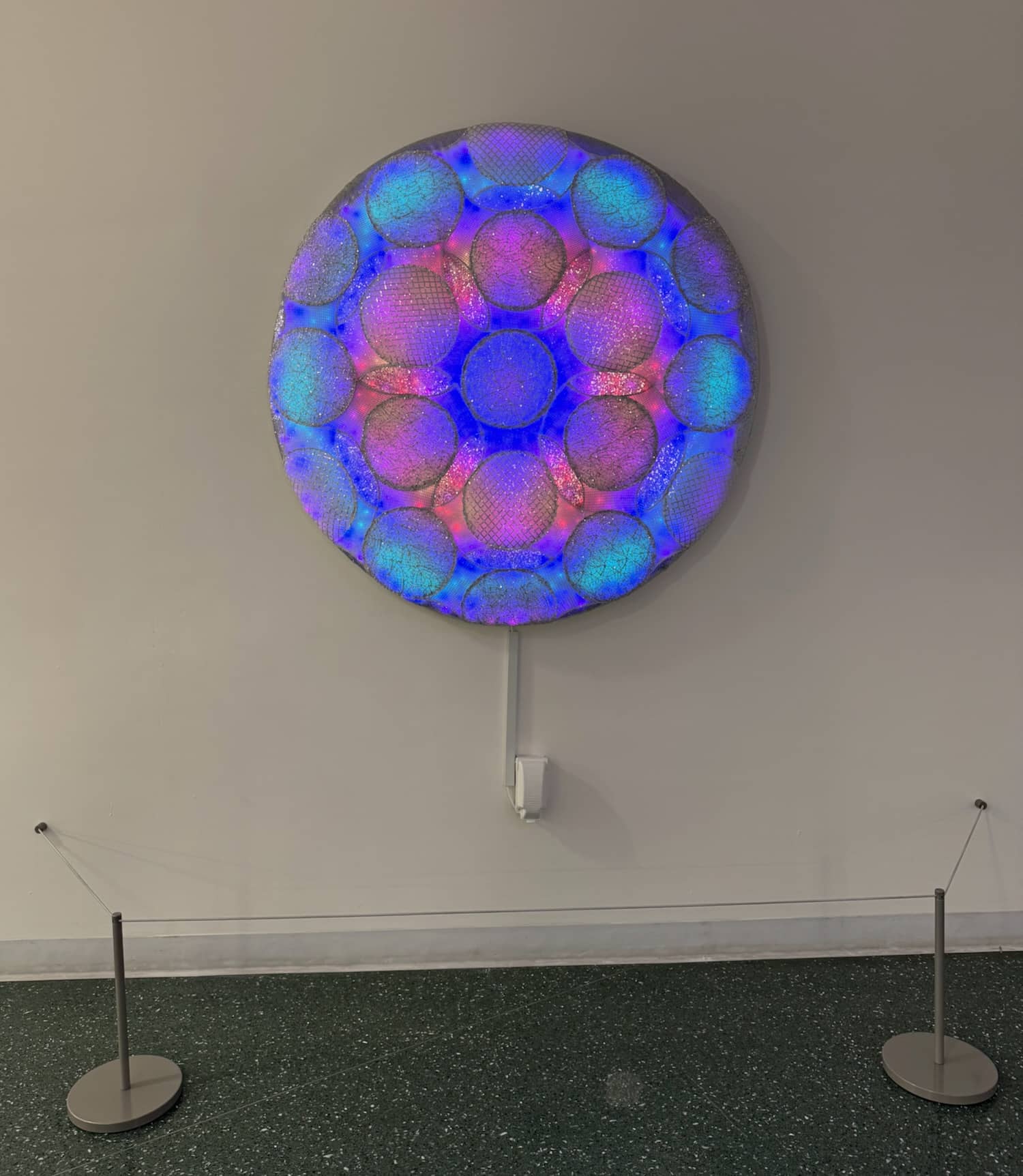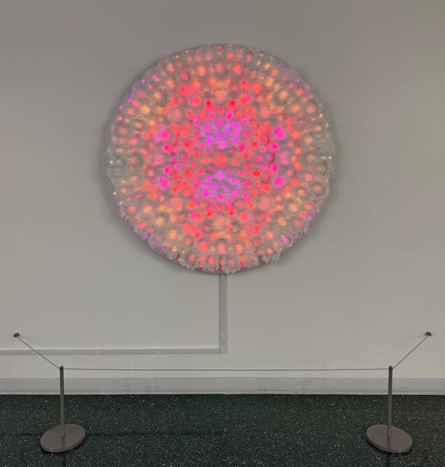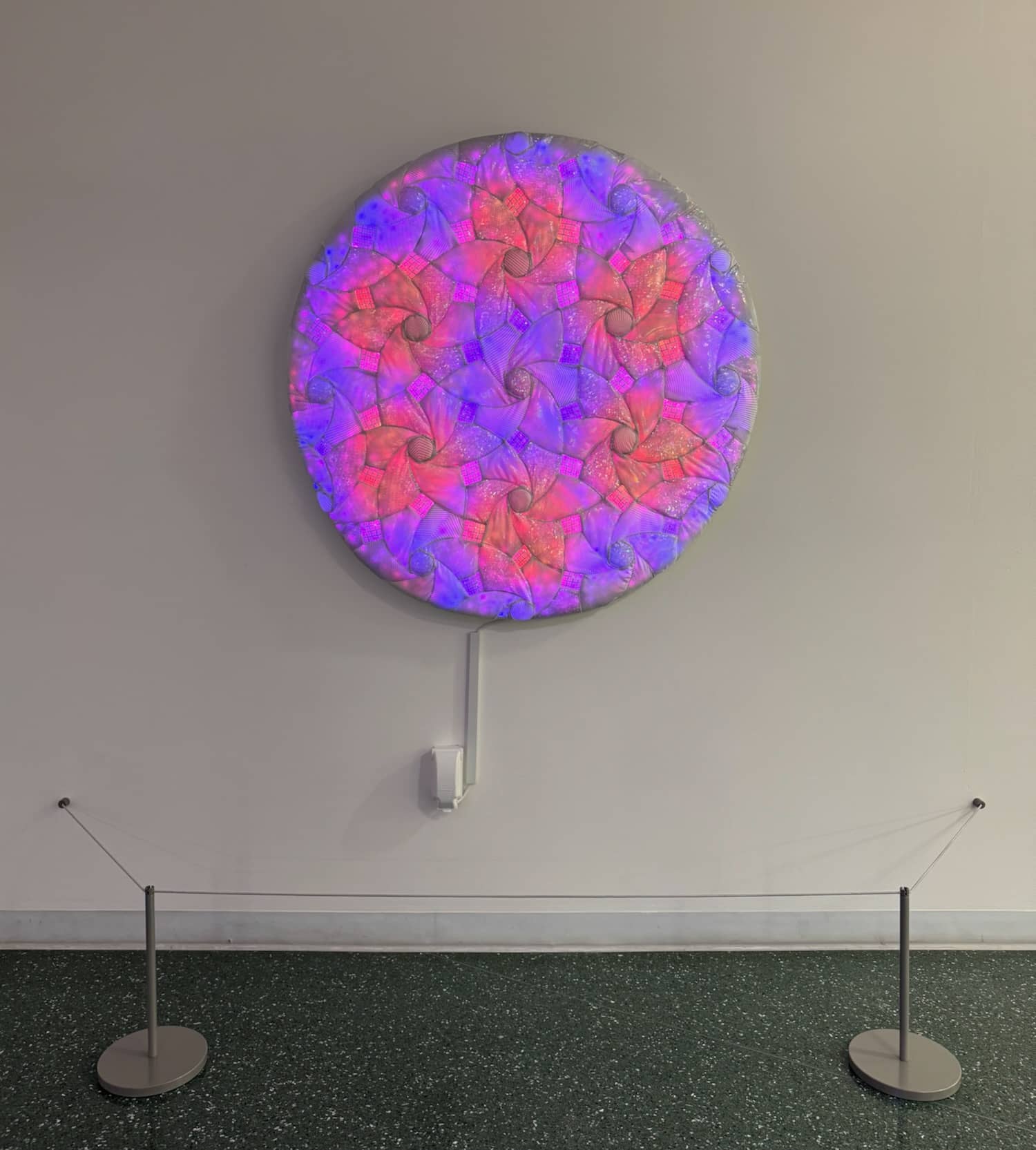This set of three pieces, entitled Kaleidoscopic Comfort, was created specifically for this location and this exhibition. Additional details for the individual pieces are available on these pages: Kaleidoscopic Comfort 1, Kaleidoscopic Comfort 2, and Kaleidoscopic Comfort 3.
