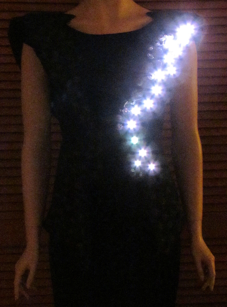 The video sample below shows two flashing modes that could be displayed on the dress: "lightning" and "fireball".
