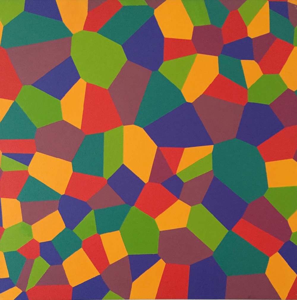 The second panel has been modified by a mechanical "relaxation" procedure in which the center defining point of each cell is moved to the centroid of that cell. The areas of these regions are more uniform, and they resemble a living system in which the expansion of each unit is limited by its immediate neighbors.