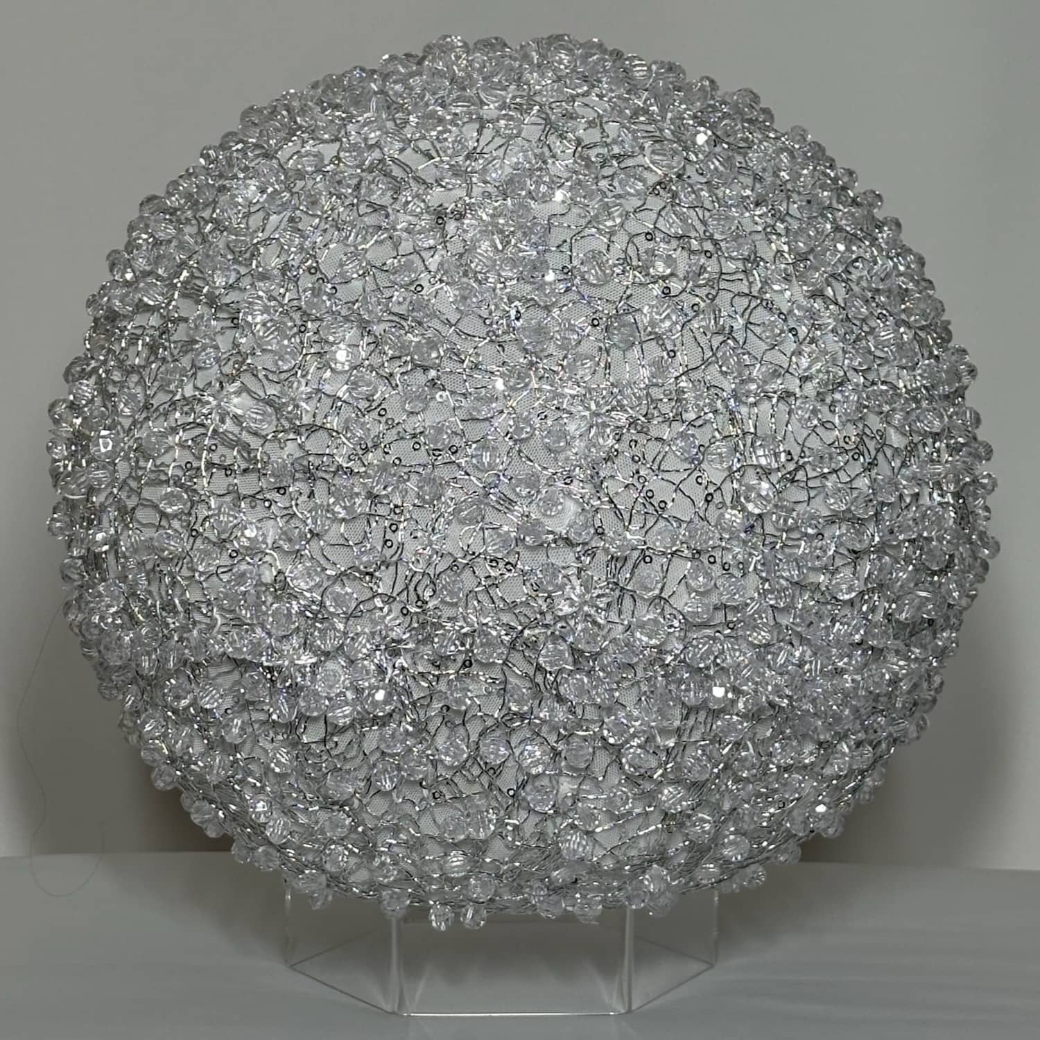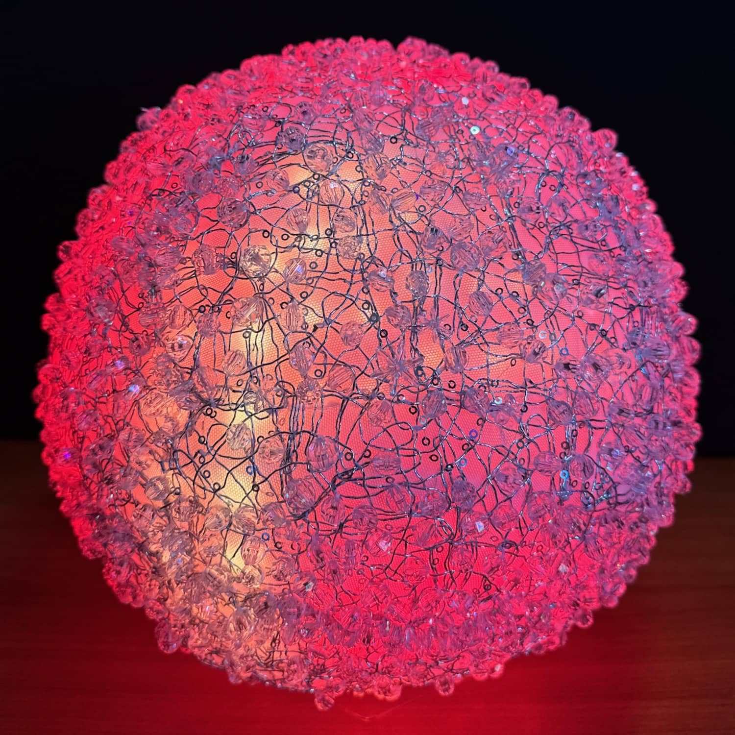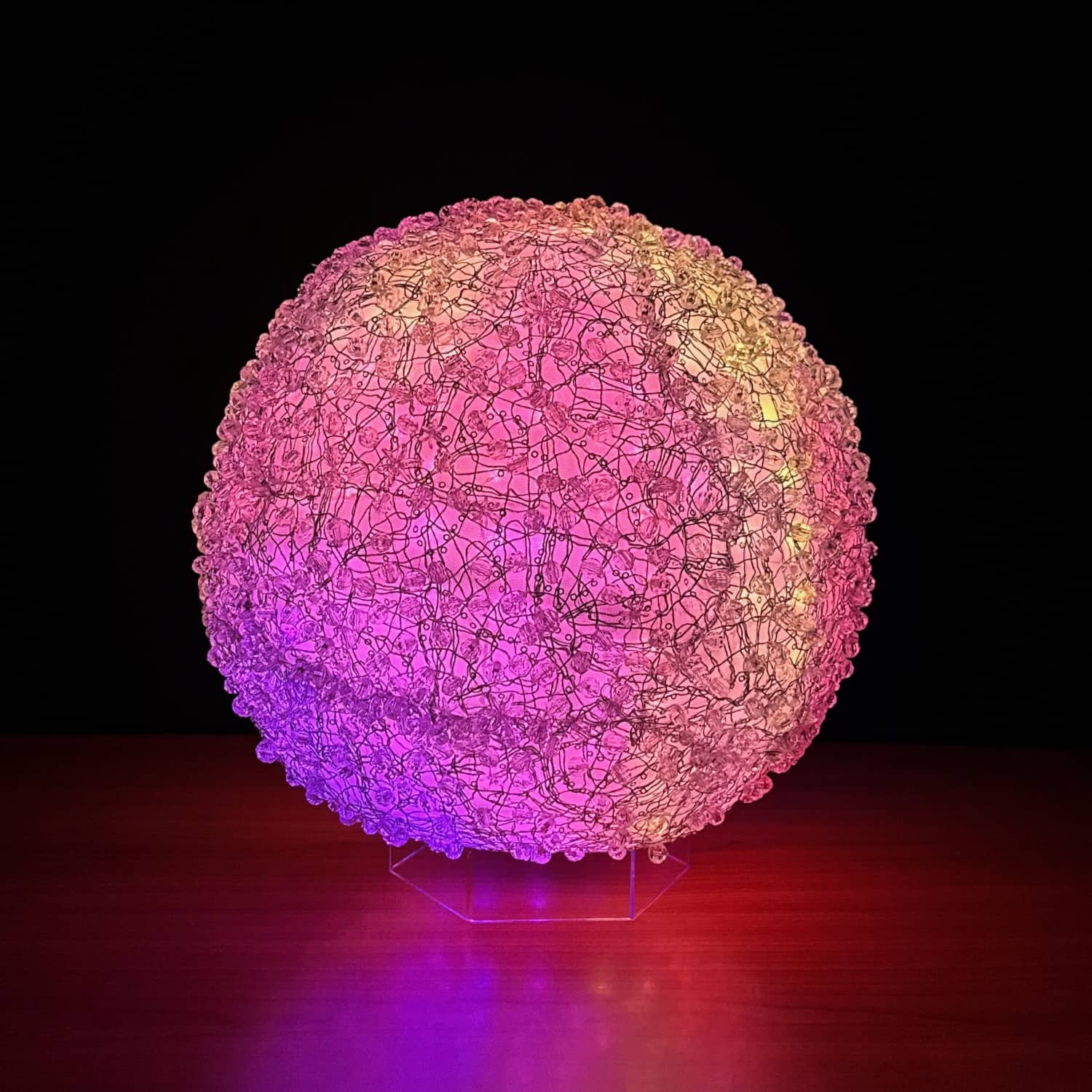 This piece evokes images of a world becoming consumed by unbearable heat, in the form of an aesthetically pleasing distraction of flowing lights on the surface of a shimmering sphere.