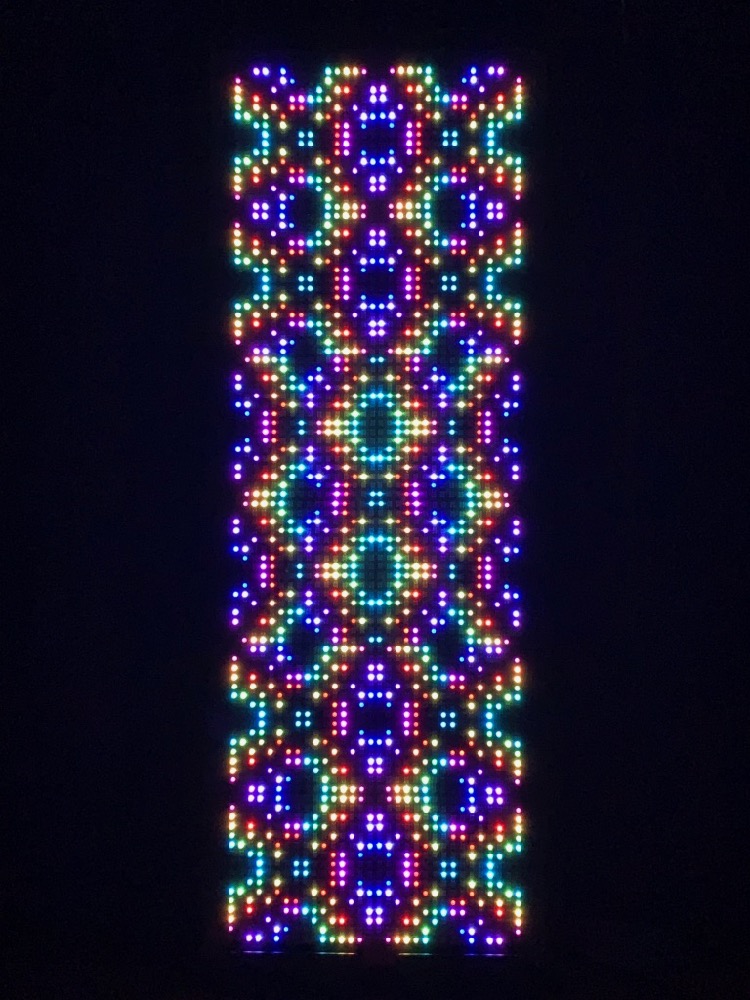 This framed electronic light panel is designed for sitting and staring. It can be used as a visual meditation aid, as decorative mood lighting, or as a part of a music-listening experience.