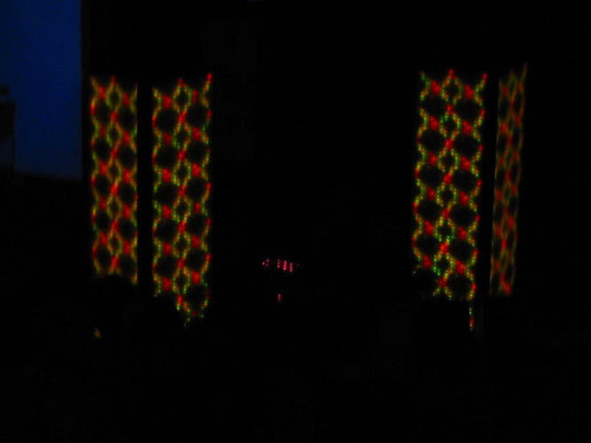 At this event, DJ Kilmore (of Incubus) performed in a solo appearance, with projected visuals by VJ Brett Spivey. A set of eight full-size (48" x 12") Sit 'n Stare panels were used as accent lighting throughout the performance.