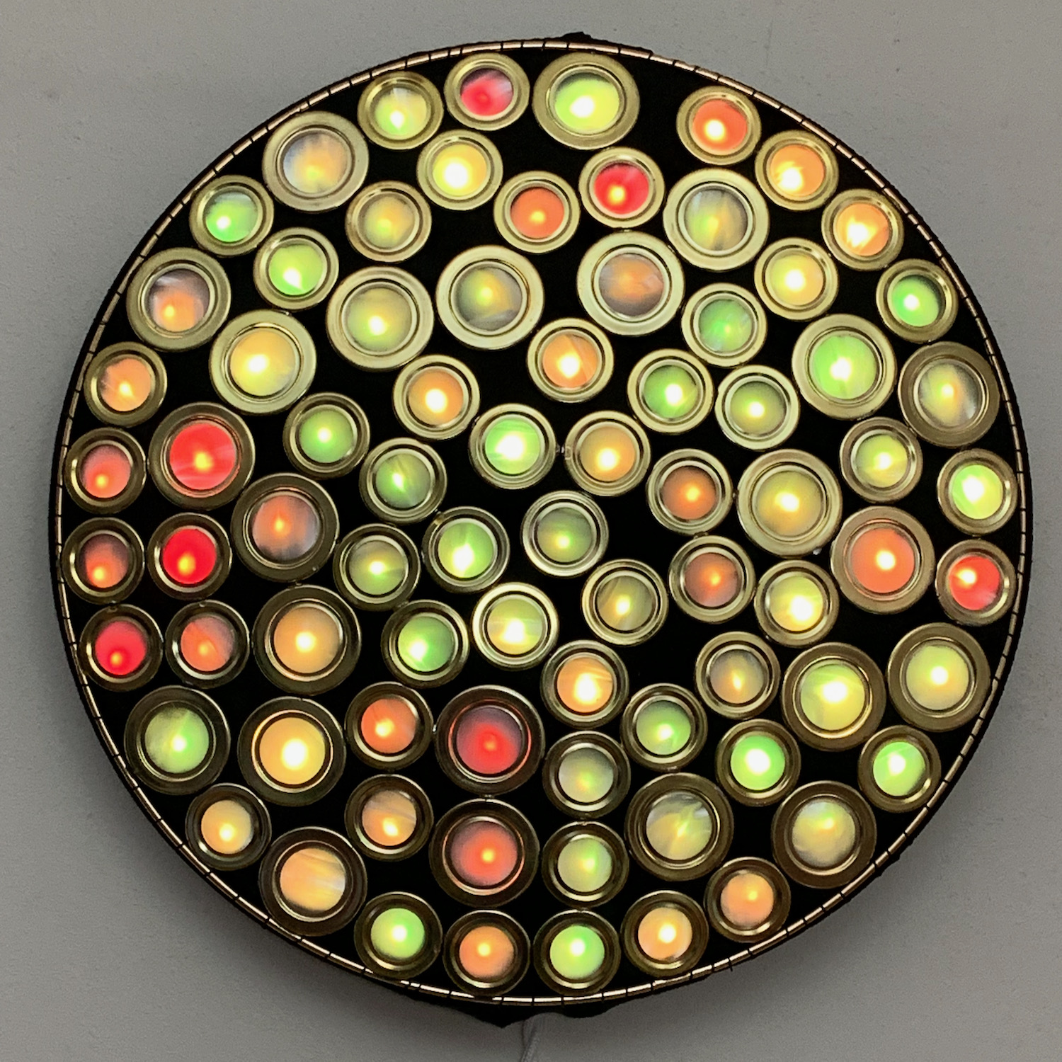 The Sunspots piece from my Illuminated Rings series was included in the exhibition. It is made with brass rings, and several of the animated LED patterns are dominated by orange, gold and yellow colors.