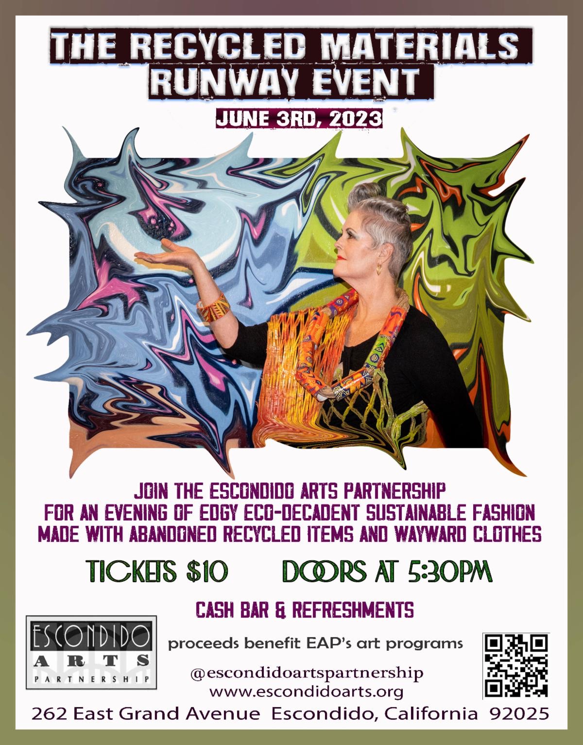 The show was held at the Escondido Municipal Gallery, and ran from May 12 through June 2, 2023. An opening reception was held on May 13 from 4-6 pm, and the Recycled Materials Runway Event was held on June 3, 2023.