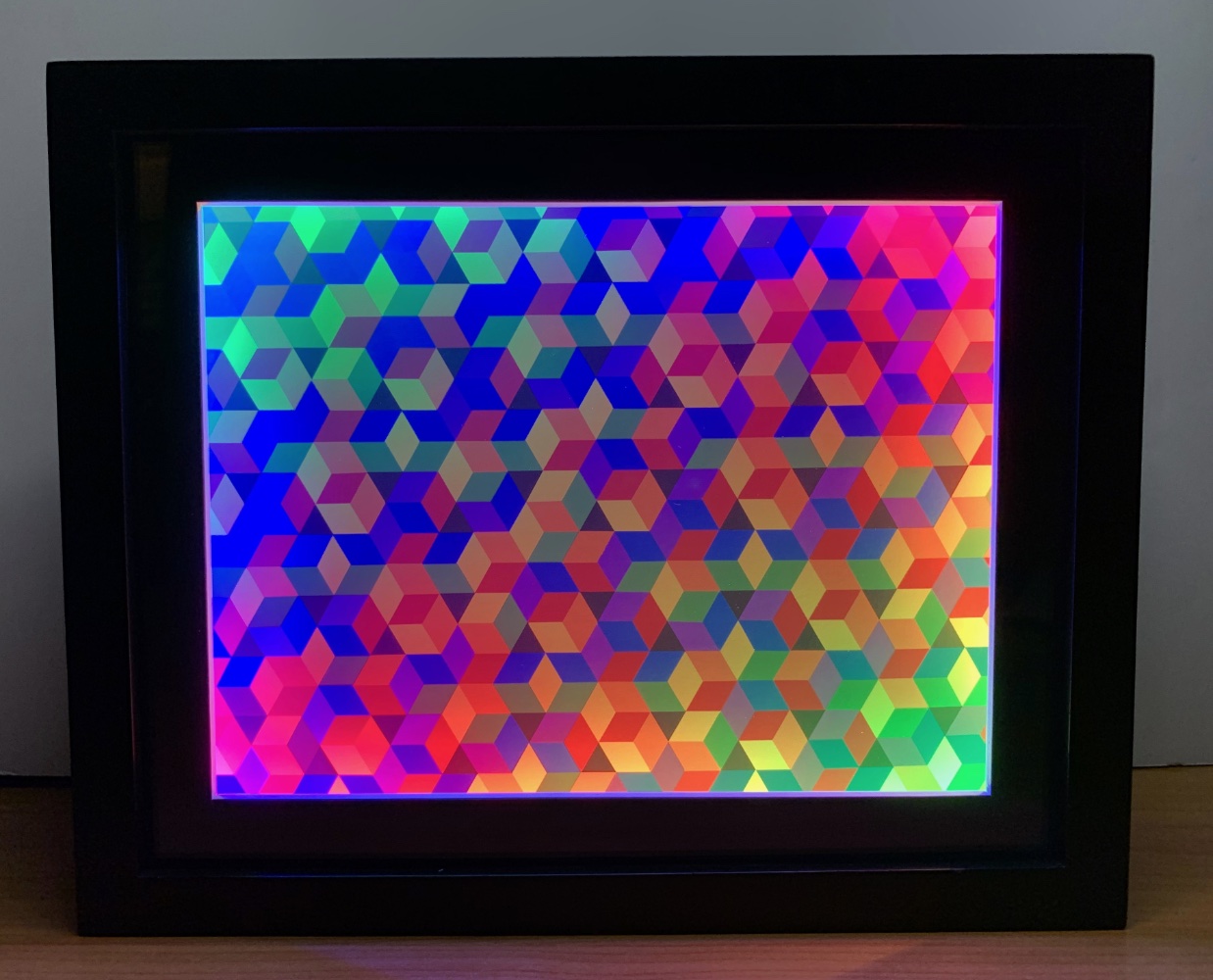Two of my pieces are being shown in this exhibit: Open Hexagonal Lattice I with Color Shifting Frame, and Closed Quadrilateral Lattice with Color Shifting Frame. Both are part of my color shifting frame series.