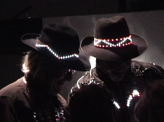 The clothing was decorated with illuminated scrolling text and graphics, with messages of love and philosophical musings, using surface-mounted LEDs on flexible circuit boards. This installation was the earliest demonstration of wearable animated displays with such a high degree of complexity, with thousands of lights per outfit.